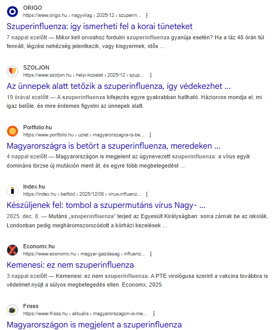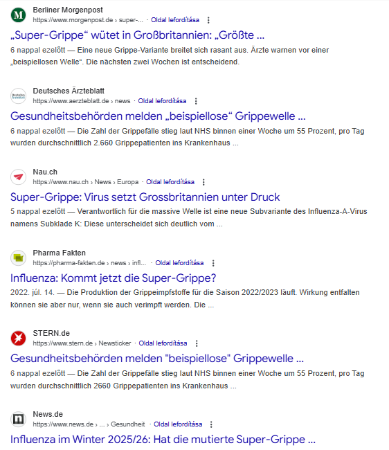 A magyar népnek lassan fel kellene fognia: Egy erőteljesen kritikus hozzáállás a főáramú tájékoztatáshoz hozzásegít a túléléshez. Sajnos a magunkfajta médiafogyasztó úgy van vele, ha sokan mondják ugyanazt, az írott, az elektronikus sajtót és a tévét-rádiót is beleértve, akkor annak muszáj igaznak lennie. Márpedig megint ott tartunk, mint a permanens, dobpergésszerű kovid-agymosás idejében. Itt a szuperinfluenza, most aztán jaj nekünk. Bezzeg Kemenesi Gábor megnyugtat: Nincs semmi szuperinfluenza, szerencsére a szezonális influenza elleni védőoltások a mostani, H3N2 influenza ellen is védenek. Nyilván birtokában van a megfelelő dupla vak klinikai tesztsorozatoknak, ahol a placebo az valóban placebo, nem pedig a mai gyógyszeripar által alkalmazott módszer szerint adjuvánsok vagy egy másik oltóanyag. Egy szóval: A vízcsapból is a szuperinfluenza folyik, és nemcsak Magyarországon, hanem Európa-szerte.