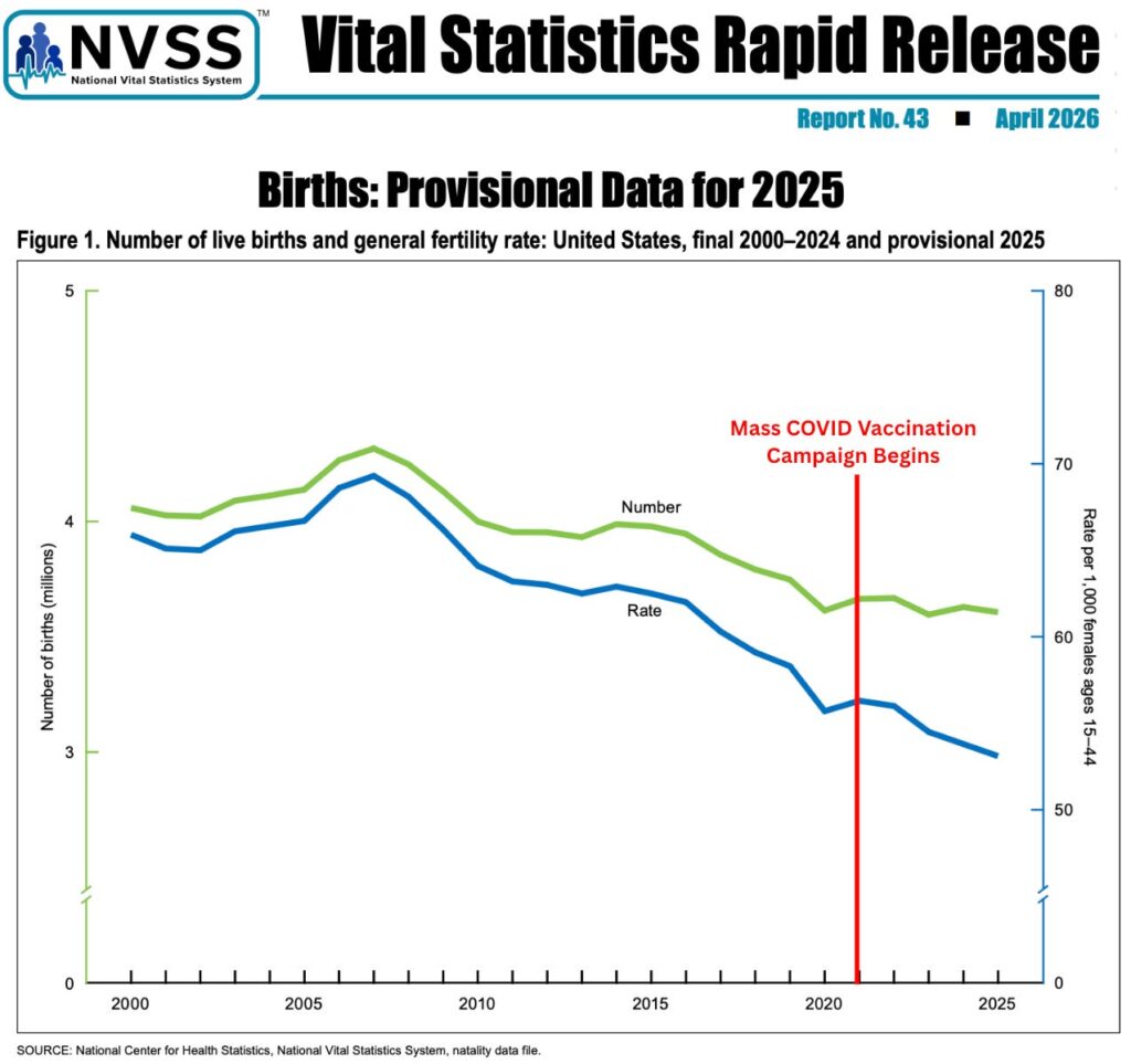 Míg a csökkenő születési arányok gazdasági nehézségekre, a házasságkötés késleltetésére, kulturális változásokra és az életmódbeli preferenciák megváltozására vezethetők vissza, a csökkenés mértéke és tartós jellege olyan biológiai károsodásokra utal, amelyeket környezeti mérgek, mint a PFAS („örökös vegyi anyagok”), ftalátok, BPA/műanyagok, peszticidek, EMF-ek, nehézfémek, légszennyezés és legutóbb az mRNS-injekciók okozta biológiai károsodásokra utalnak.