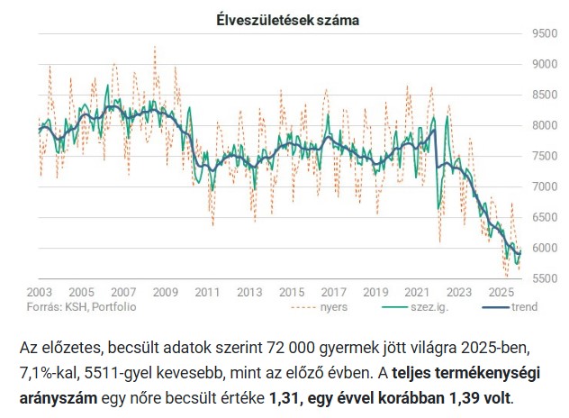 2025-ben az általános születési arány (1000, 15 és 44 év közötti nőre számítva) mindössze 53,1 születésre esett vissza, ami újabb történelmi mélypontot jelent.